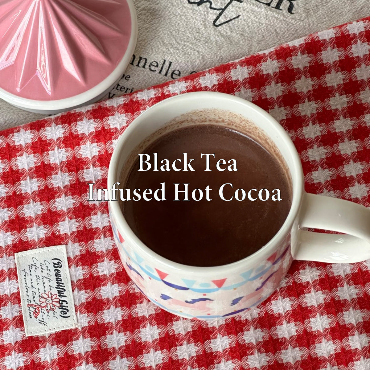 A comforting blend of smooth black tea and gentle cocoa richness. The tea forms a clean, balanced base, while chocolate and milk add soft warmth and depth. Enjoy it pure for a refined tea experience, or with cocoa for a cozy, indulgent twist.