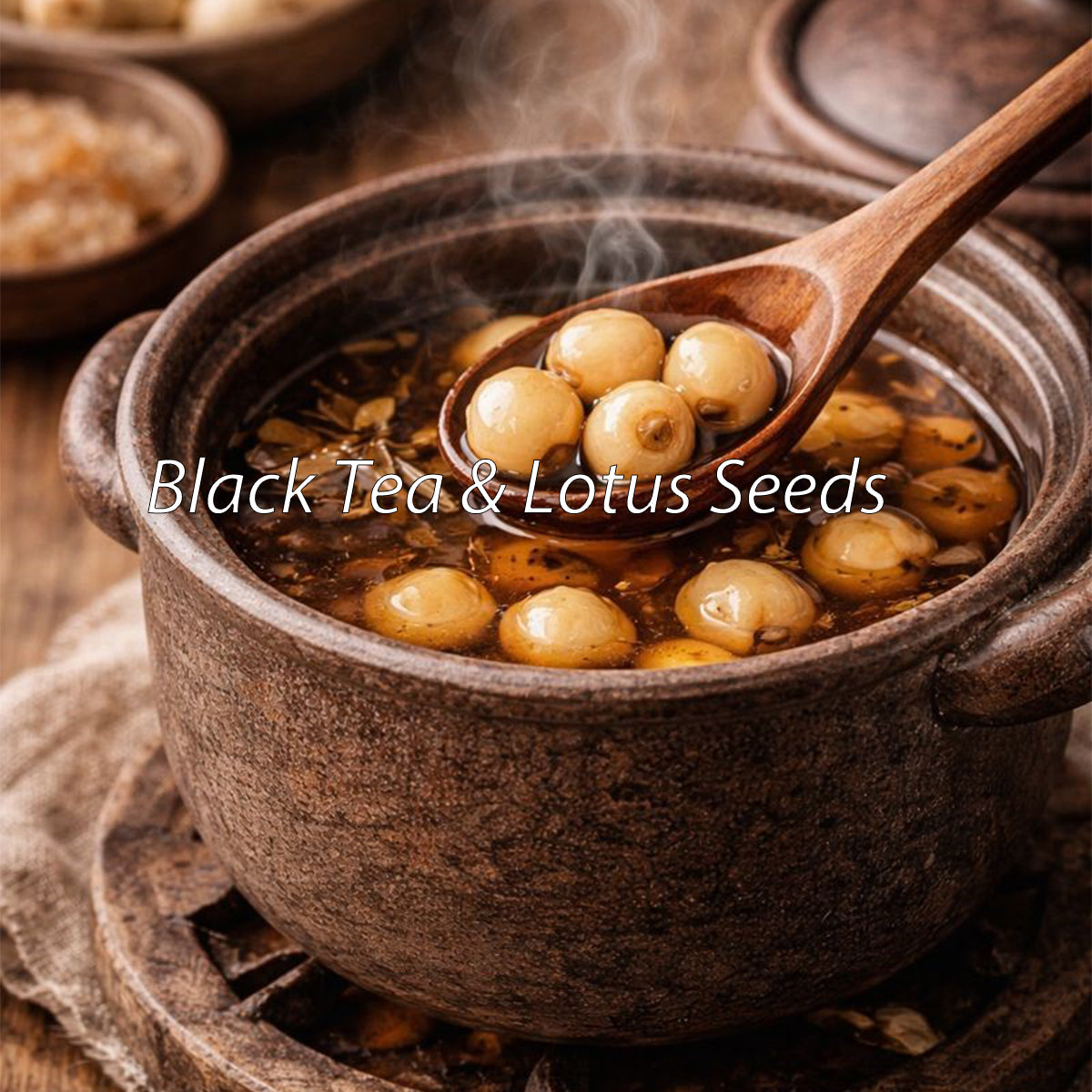 A slow-simmered tea that brings together the soft sweetness of lotus seeds and the deep body of wild ancient tree black tea. Smooth, mellow, and quietly nourishing—perfect for unhurried moments.