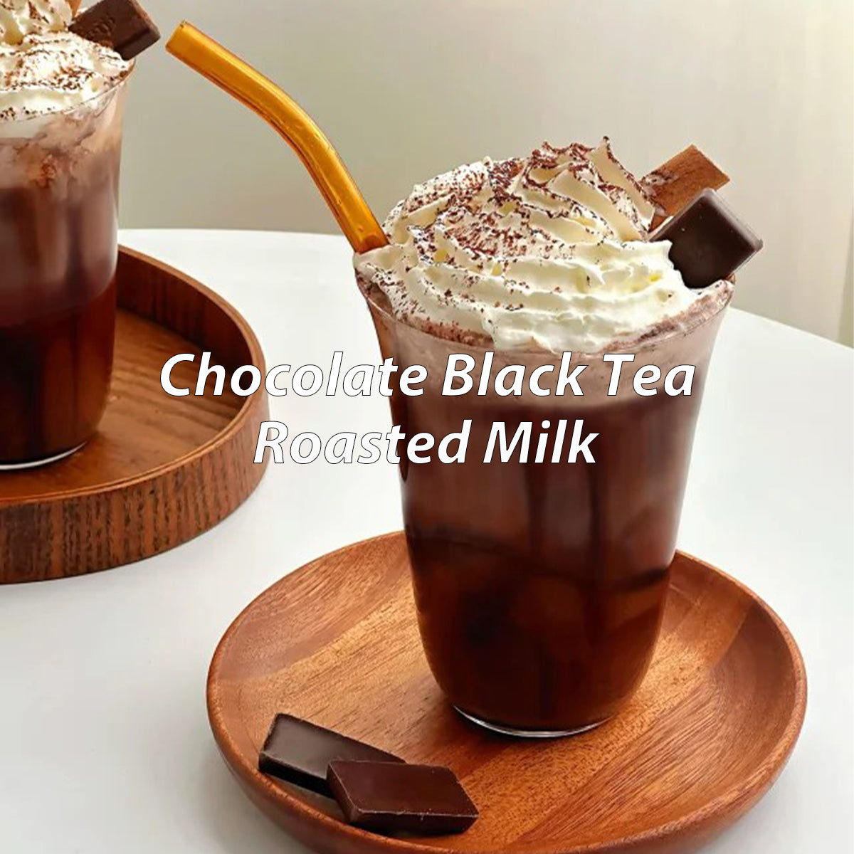 A cozy dessert-style milk tea where roasted black tea meets melted chocolate and caramelized sugar for a rich, silky cup.