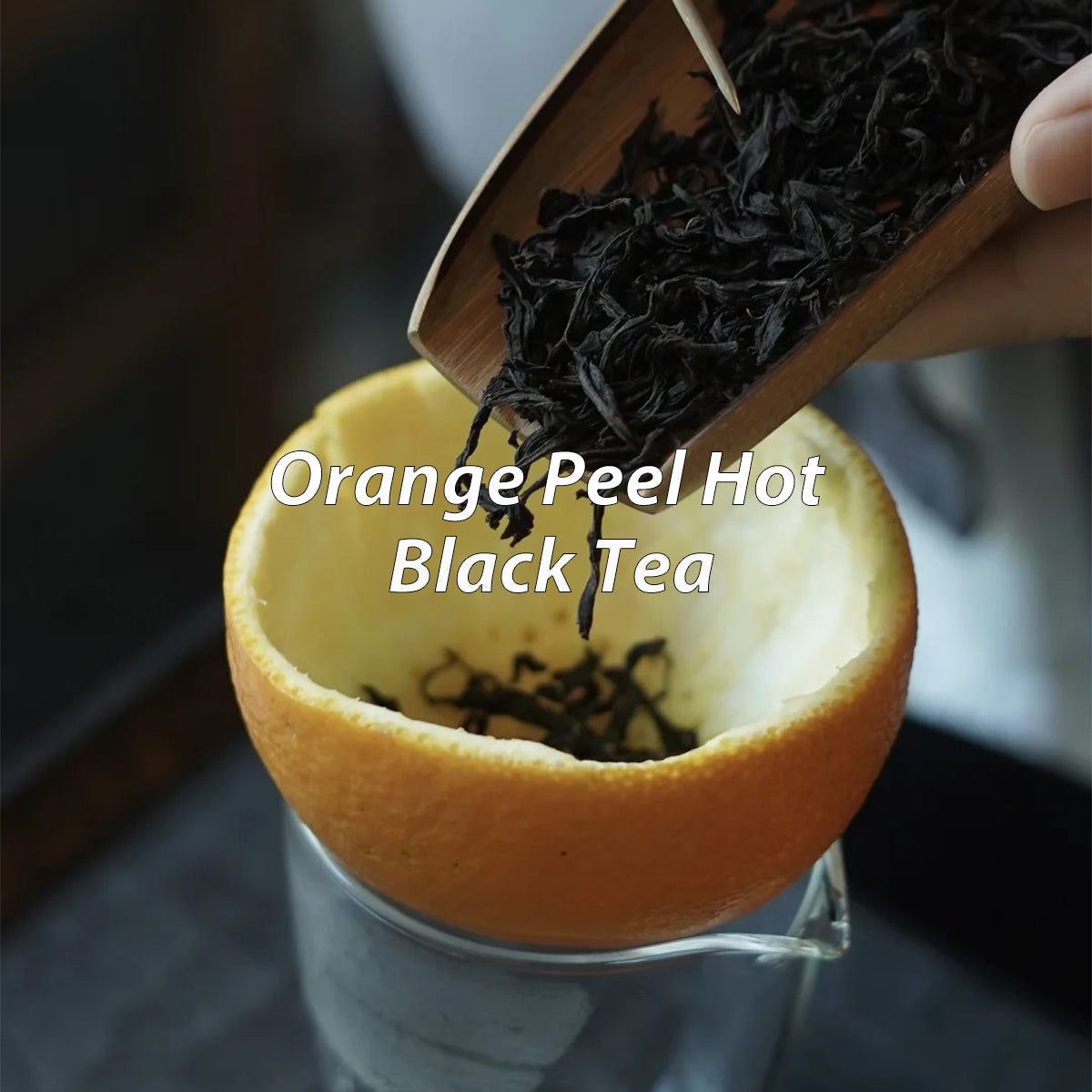 A handcrafted black tea brewed inside fresh orange peel, combining bright citrus notes with the natural sweetness of Golden Bud black tea.