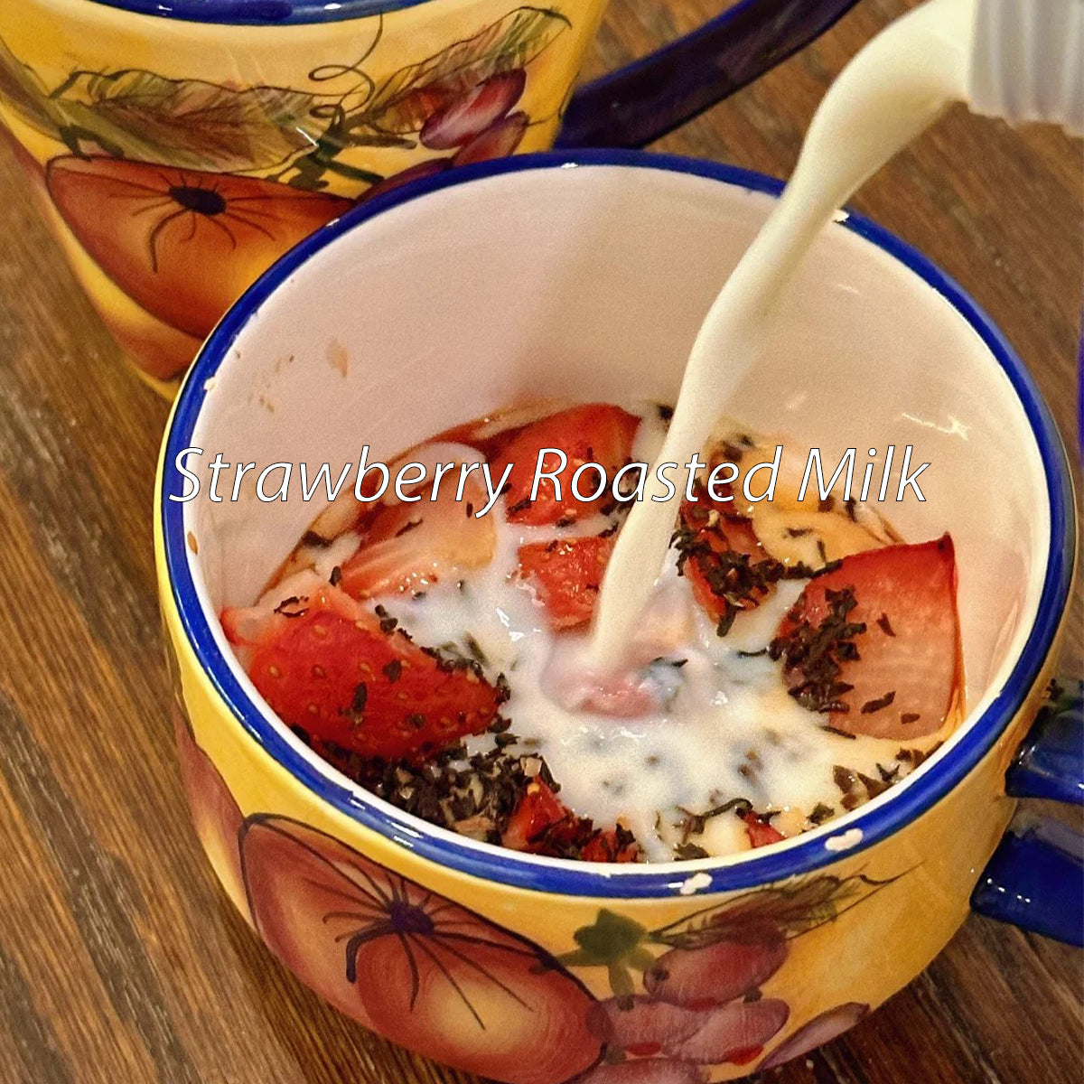 This dessert-style milk tea is made by gently roasting golden bud black tea with brown sugar and fresh strawberries, then simmered with milk for a rich, silky cup with soft caramel and fruit notes.